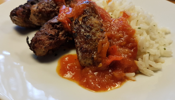 Suzukakia mit Tomatensoße und Reis